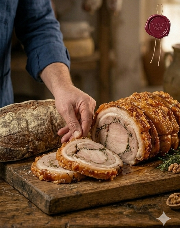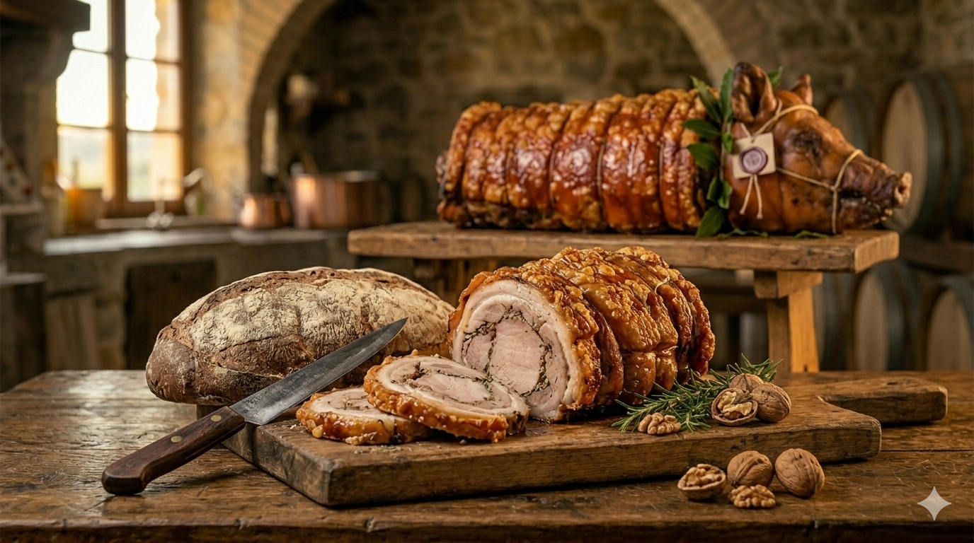 Il Cuore croccante dei Castelli Romani sulla tua tavola, la leggendaria Porchetta di Ariccia IGP
