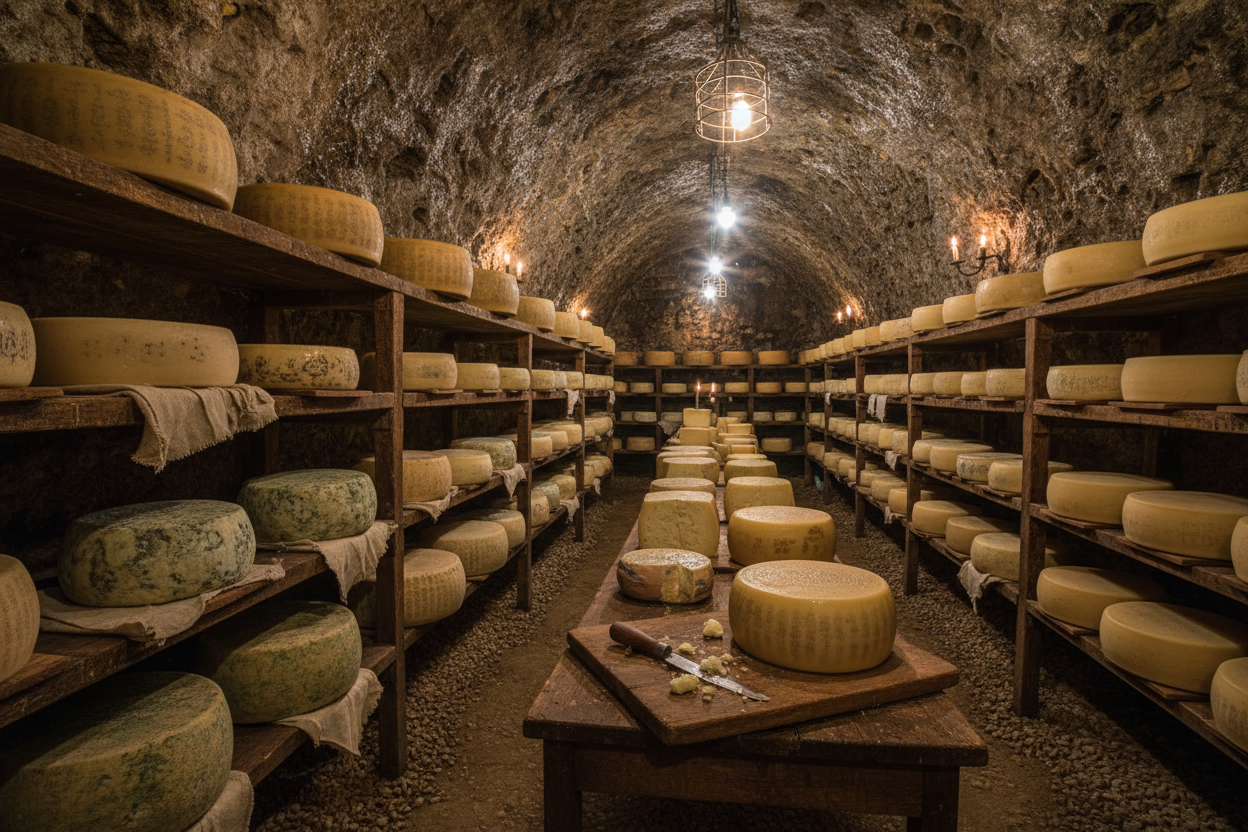 Formaggi di Grotta: Affinati nel silenzio e nell'umidità della roccia per aromi terrosi e profondi.